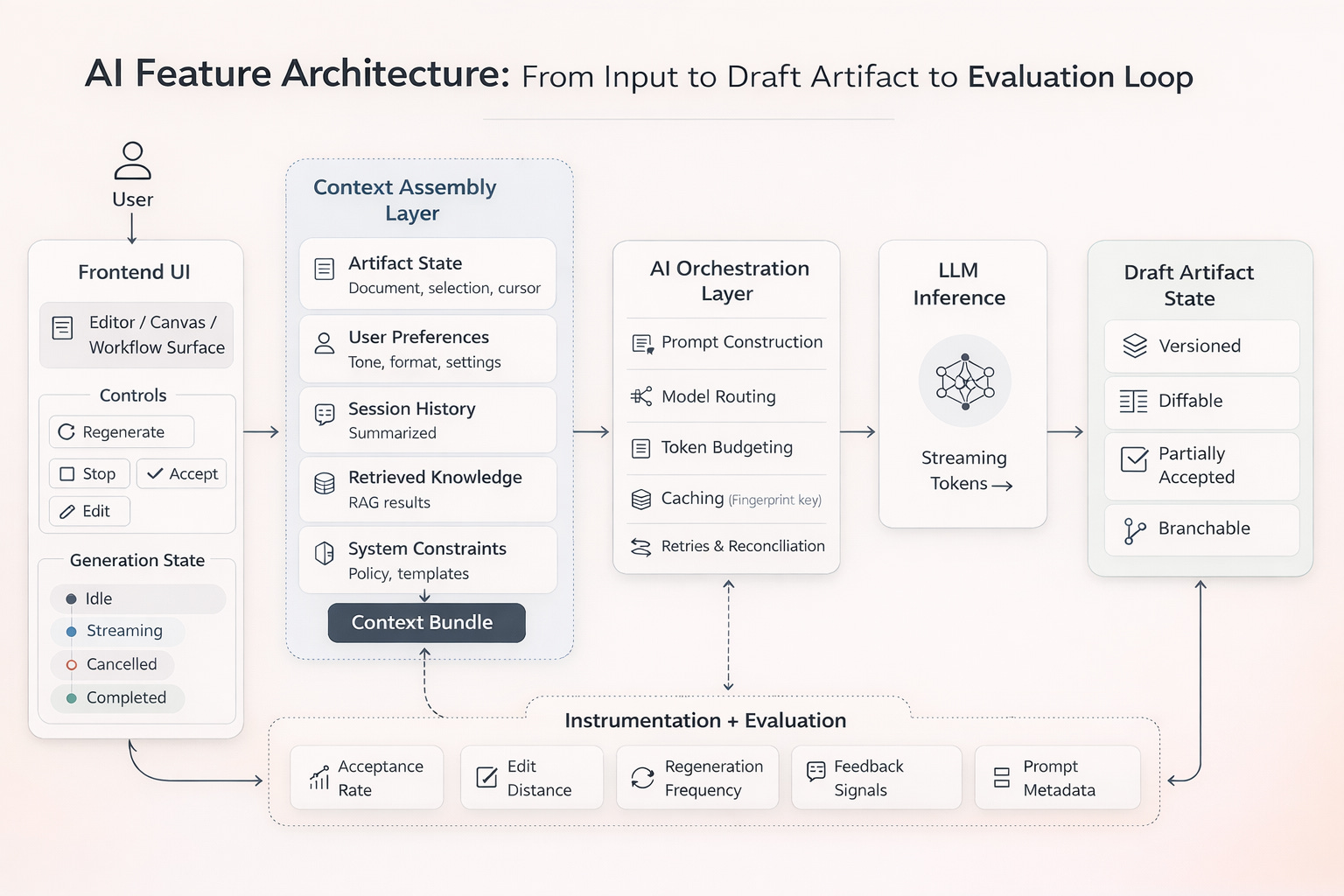 Architecture patterns and design decisions for building reliable LLM-powered features in modern frontend systems
